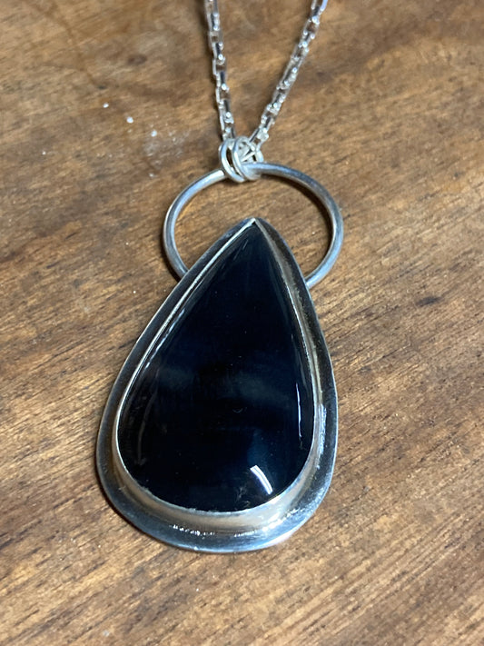 Midnight Onyx Teardrop Necklace – Sterling Silver Handcrafted Adornment